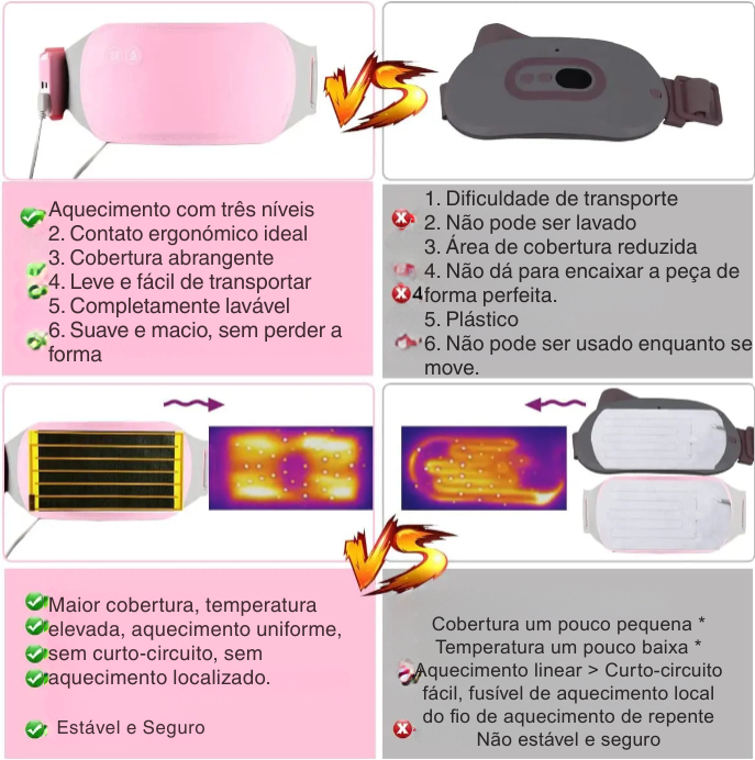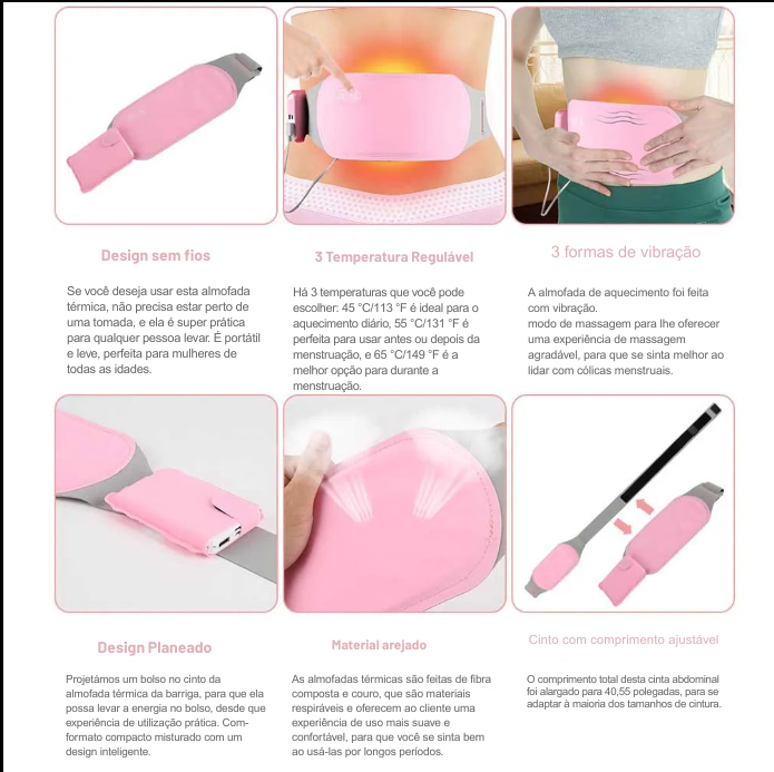 - Uso Multifuncional: Aquece e protege o abdômen, cintura e útero. Ideal para aliviar cólicas menstruais, dores abdominais, tensões e até menstruação abundante.